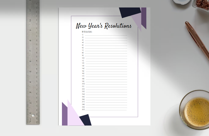 A Year in Purple: Printable New Year's Resolutions Template